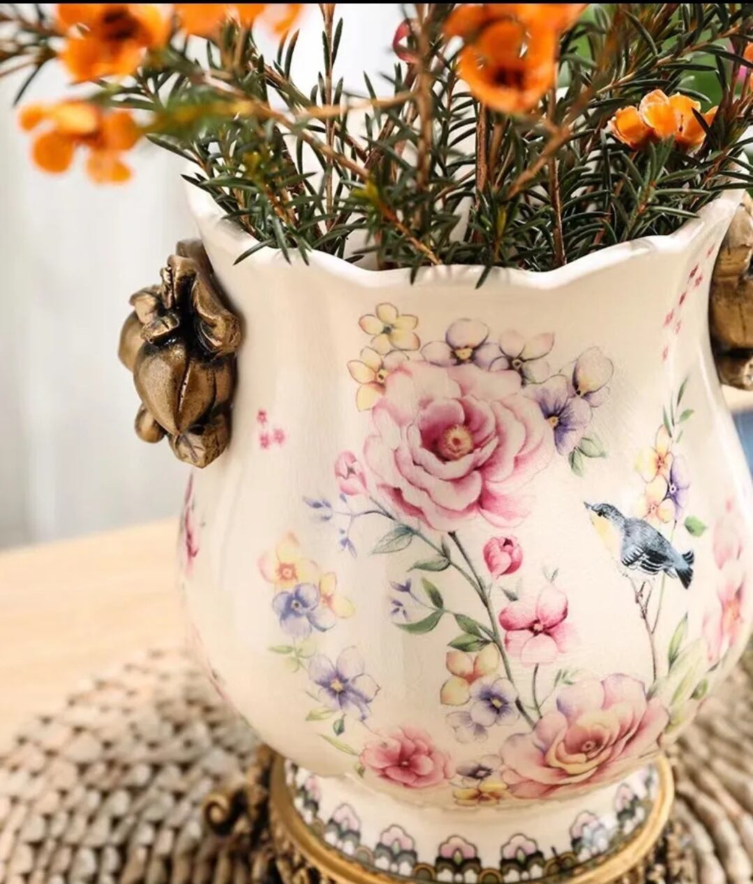 アンティークな中国風の花瓶。繊細で美しい色彩が特徴の一品です。歴史を感じさせる装飾や細部にまで込められた職人の技術に見惚れること間違いなしです。