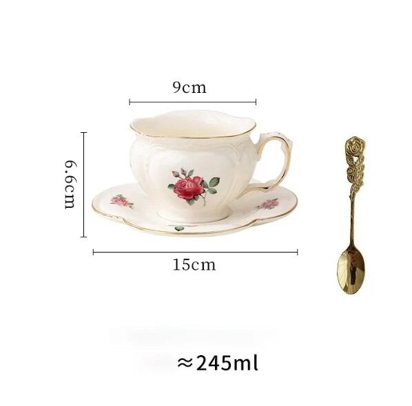 美しい薔薇の模様が施されたセラミック製ティーカップセット。リッチなヨーロピアンスタイルでティータイムをさらに華やかに彩ります。ポット1とカップ2、スプーン2がセットになっているので、大切な人とのティータイムを楽しむことができます。