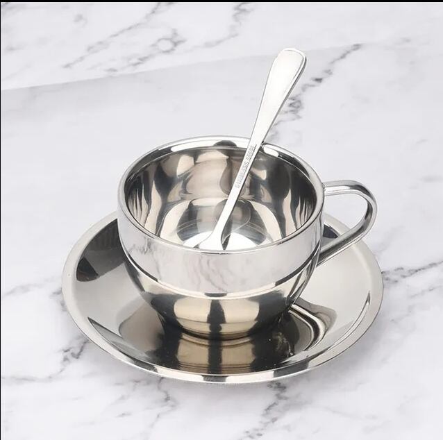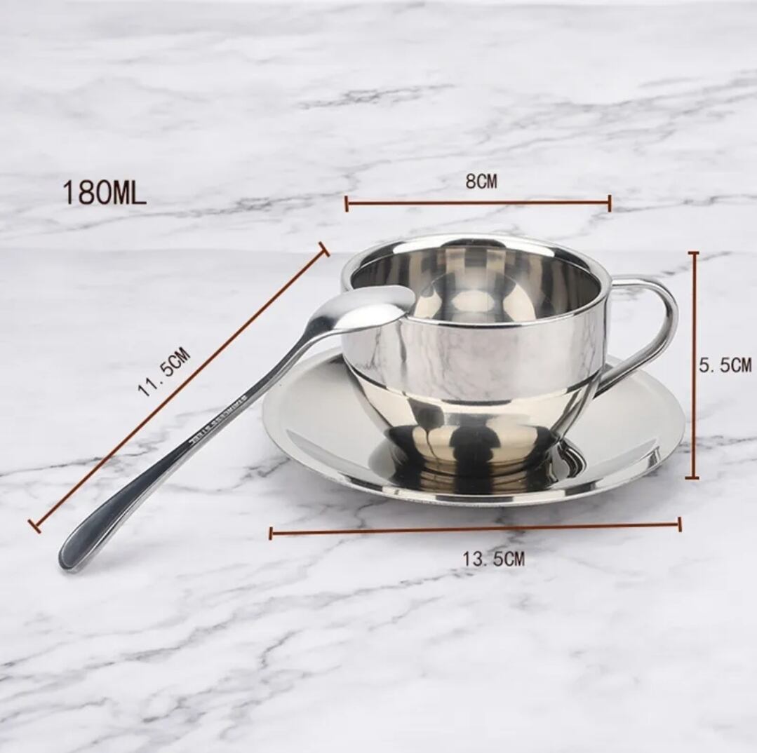 ステンレス製断熱コーヒーカップ(スプーン・ソーサー付)