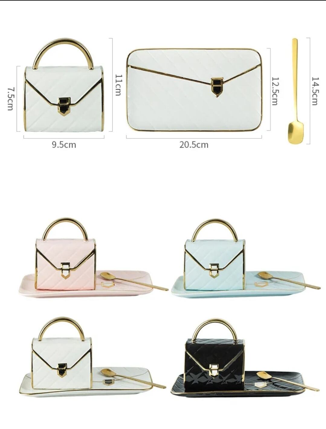ハンドバッグ型マグカップ(ソーサー・スプーン付)